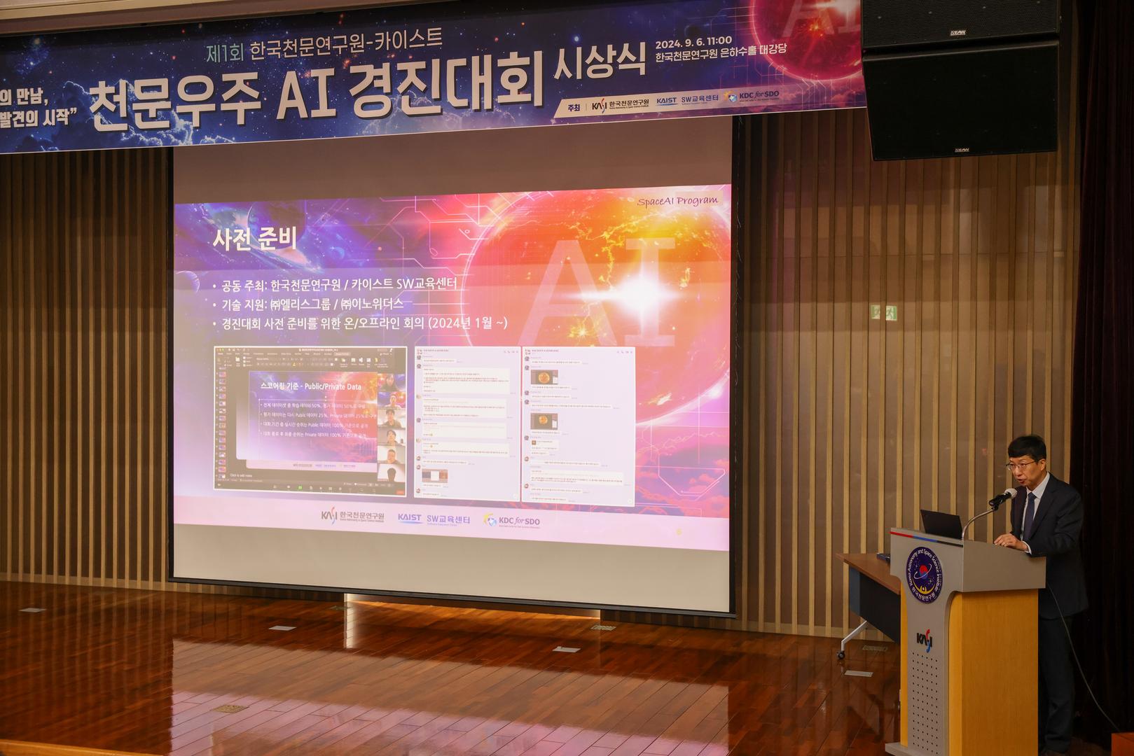 The Astronomy & Space AI Competition, hosted by KASI and KAIST, is designed to foster new research outcomes in space science by applying AI techniques and to evaluate the performance of AI models. Participants worked on tasks involving space-data analysis and AI model development. This competition served as a meaningful opportunity to advance space exploration and data analysis through the convergence of space science and AI.